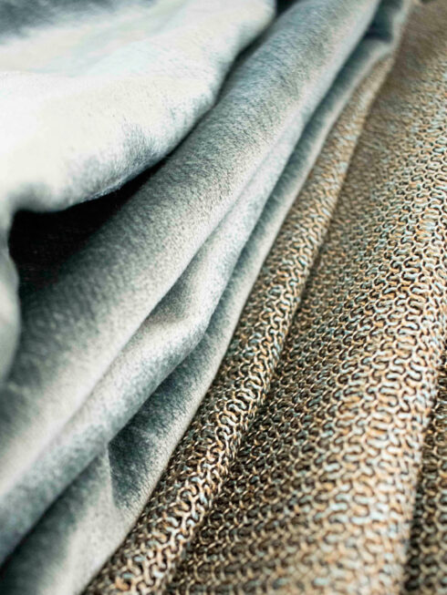 Somos unas apasionadas del papel pintado y del tejido. Disponemos de más de 150 muestrarios de papel. Las texturas son una de nuestras prioridades a la hora de trabajar, pues éstas hacen que lo sensorial tenga un papel protagonista.
